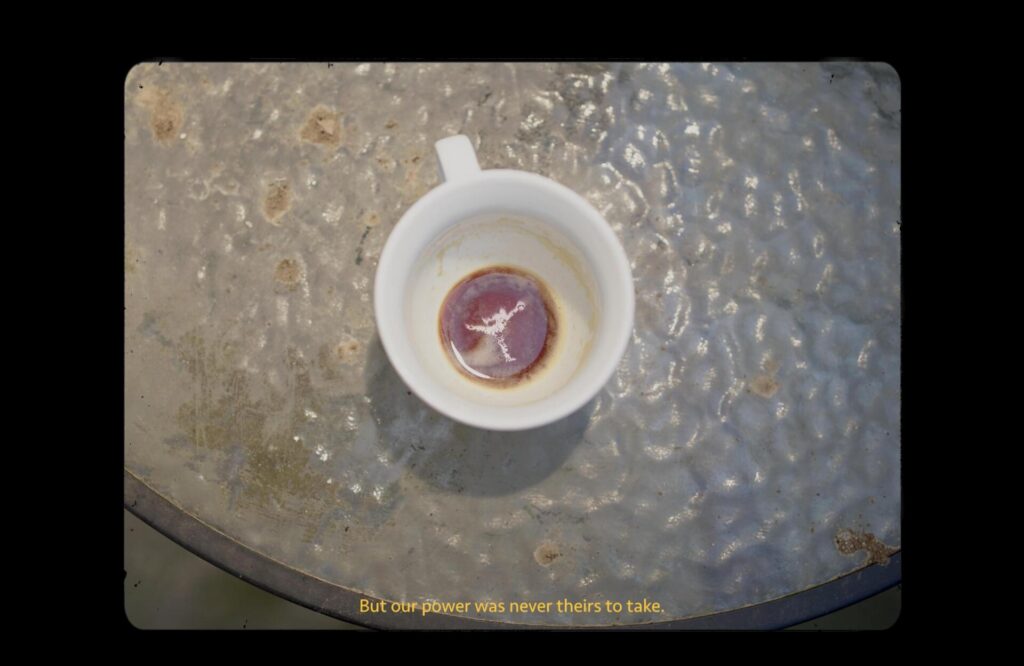 His grandfather’s chair — a symbol of a man tough in his ways, yet gentle at heart. The Jordan logo revealed in a cup of coffee — a nod to the traditional Roma practice of reading coffee grounds.
